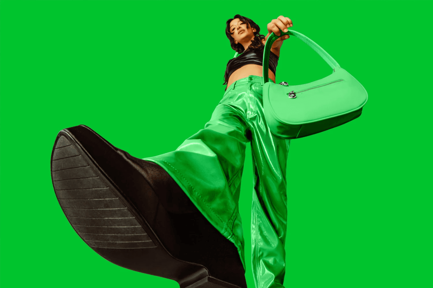이 프로젝트에서 가장 놀라웠던 점을 꼽자면 사진을 활용하는 방식이였습니다. 사진은 주로 브랜드 배경색 위에 누끼가 따진 인물이나 제품이 올라가는 구조에요. 여기서 주목해야 될 점은 사진의 구도에요. 아래에서 위를 올려다보는 극단적인 구도가 특징입니다. 왜 이런 구도로 표현했을까를 생각해보면 또 번개가 등장합니다. 번개 심볼을 살펴보면 굵은 윗부분에서 시작되서 꺽이면서 점점 얇아지는 조형적인 특징이 있어요. 사진 구도에서 이러한 특징을 강조하려고 한 게 아닐까 생각해봅니다.