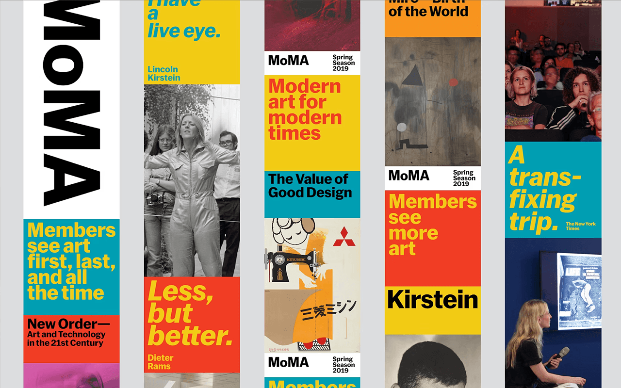 MoMA의 커뮤니케이션 계획이 전시 중심 캠페인에서 계절별 접근 방식(봄-여름-가을)으로 확대됨에 따라, MoMA는 Order에 광고 및 관련 자료를 위한 보다 모듈화되고 적응 가능하며 확장 가능한 디자인 시스템을 발전시키고 정의해 달라고 요청했습니다. (Order.design 프로젝트 소개 본문 중 발췌)