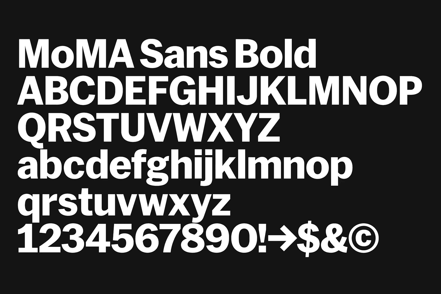 사용한 폰트는 MoMA Sans로 자체적으로 제작한 폰트로 보여집니다. 웨이트를 Bold로 두껍게 사용하여 단단하고 힘있는 인상을 전달합니다. 채도가 높고 대비가 높게 설계된 색상과 더불어 본다면 MoMA 브랜드의 전체적인 방향이 높은 주목도에 방향이 잡혀있다고 느껴집니다. 멀리서 보면 각 작품들이 서로 자신을 봐달라고 소리치는 느낌을 받기도 합니다.